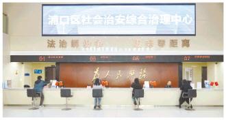 圖為江蘇省南京市浦口區(qū)社會治安綜合治理中心工作人員有序接待辦事群眾。
