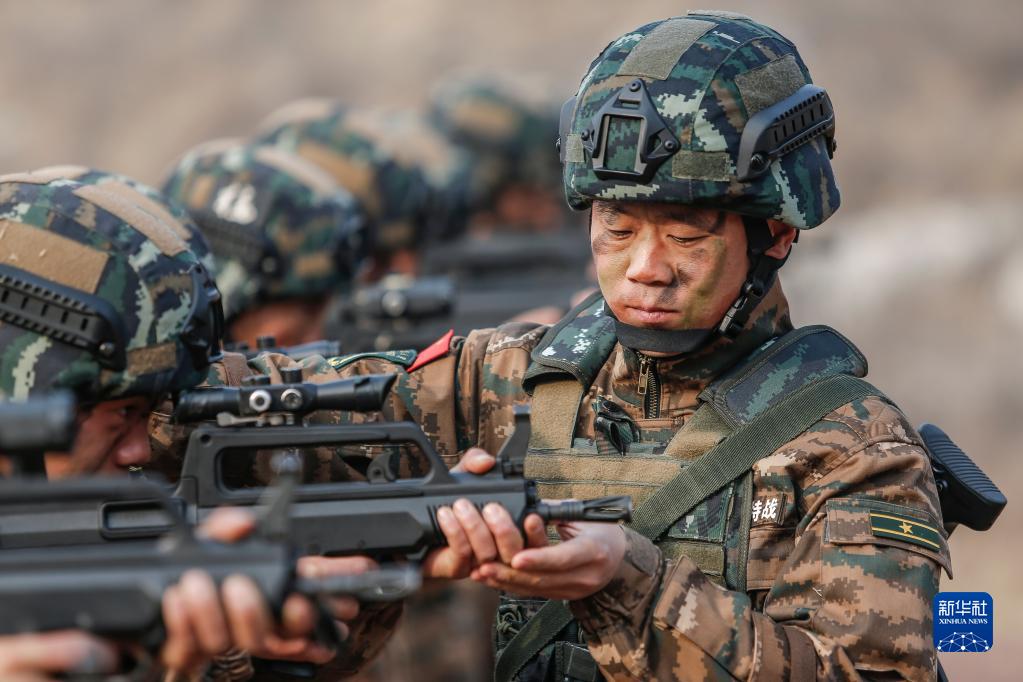 武警河北總隊某部大隊長李闖組織特戰(zhàn)隊員進行據(jù)槍訓練(2021年3月4日攝)。新華社發(fā)(張丹 攝)