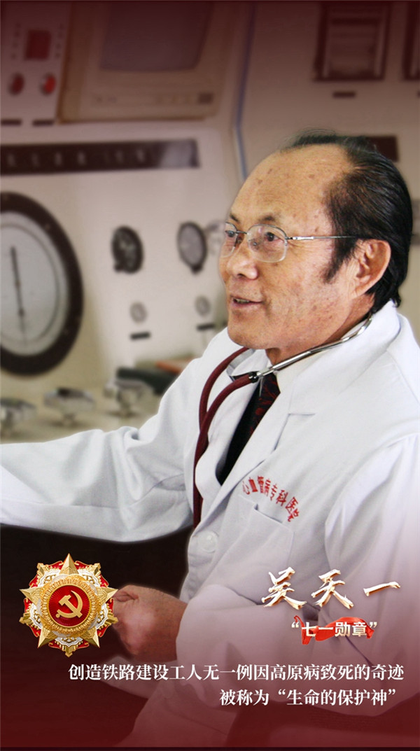 青藏鐵路建設5年中,作為原鐵道部高原醫(yī)學專家組組長,吳天一帶頭制定出一系列勞動保護和高原病防治措施,建立了全面科學的衛(wèi)生保障措施和急救方案,將高原病的自我判斷方法寫入科普手冊,送到每個筑路工人手中。