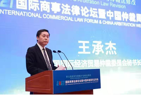 9月17日,2021國際商事法律論壇暨中國仲裁周河北專場在河北省石家莊市成功舉辦。由河北省貿(mào)促會、中國國際經(jīng)濟貿(mào)易仲裁委員會、中國國際貿(mào)易促進委員會調(diào)解中心、河北雄安新區(qū)中級人民法院、河北省律師協(xié)會共同主辦。河北省貿(mào)促會索建杰副會長、中國國際經(jīng)濟貿(mào)易仲裁委員會王承杰副主任兼秘書長、中國國際貿(mào)易促進委員會調(diào)解中心蔡晨風秘書長、河北雄安新區(qū)中級人民法院張曉梅副院長、河北省律師協(xié)會張金龍會長致辭。