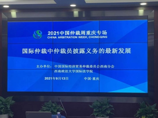 2021年9月13日,“國際仲裁中仲裁員披露義務的最新發(fā)展”專題講座在重慶成功舉行。本次講座是2021中國仲裁周系列活動之一,由中國國際經(jīng)濟貿(mào)易仲裁委員會(貿(mào)仲)西南分會、西南政法大學國際法學院主辦。