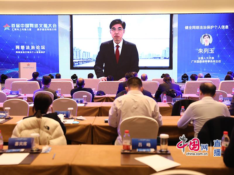 在主旨發(fā)言環(huán)節(jié),全國人大代表、廣東國鼎律師事務(wù)所主任朱列玉以“健全網(wǎng)絡(luò)法治 保護個人信息”為題進行了發(fā)言交流,以下是發(fā)言內(nèi)容。