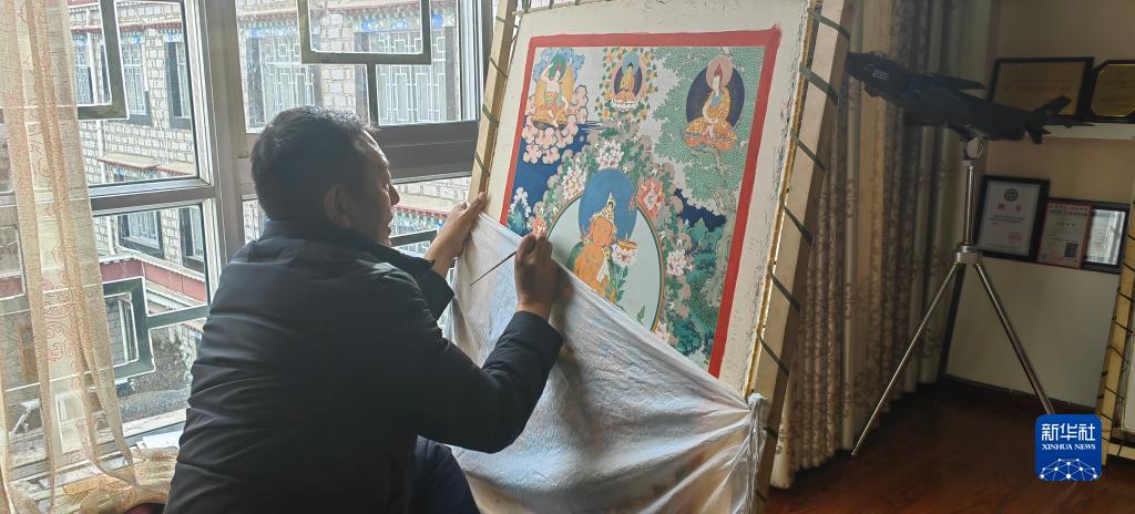 羅布斯達在工作室繪制唐卡。 新華社記者 范帆 攝
