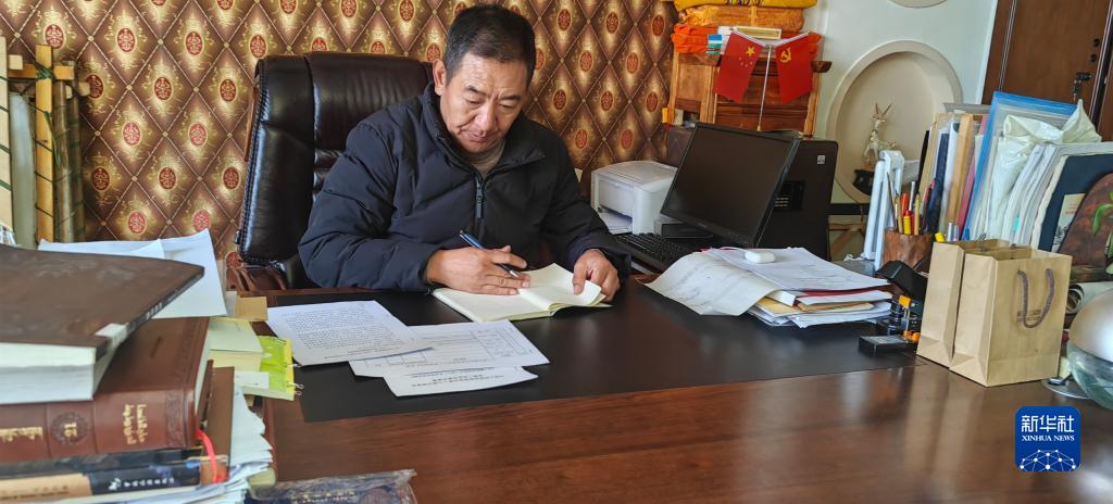 羅布斯達在整理調研筆記。 新華社記者 范帆 攝