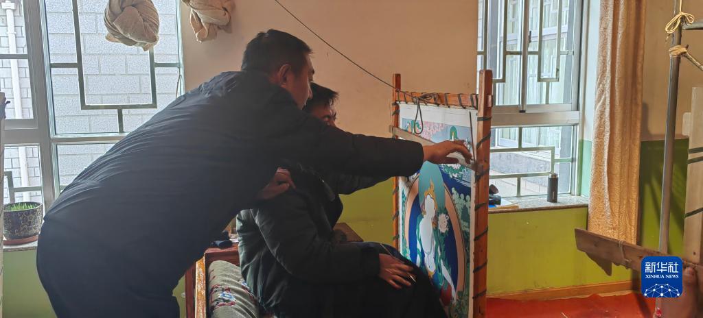 羅布斯達正在指導學生繪制唐卡。 新華社記者 范帆 攝