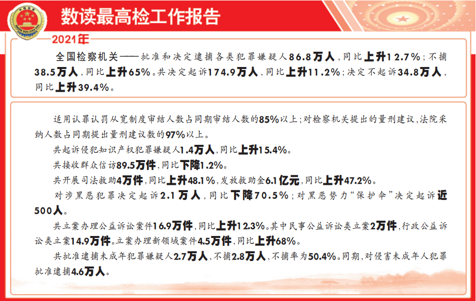 【報(bào)告解讀】2021年,最高檢開(kāi)展“百件積案化解”攻堅(jiān)行動(dòng),對(duì)100件長(zhǎng)期信訪、矛盾突出、反映強(qiáng)烈、化解難度大的“釘子案”“骨頭案”開(kāi)展集中攻堅(jiān),目前已經(jīng)全部辦結(jié)。