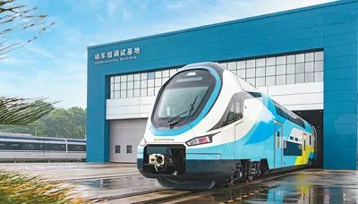中國首列出口歐洲的雙層動車組在位于湖南省株洲市的中車株機(jī)公司下線。