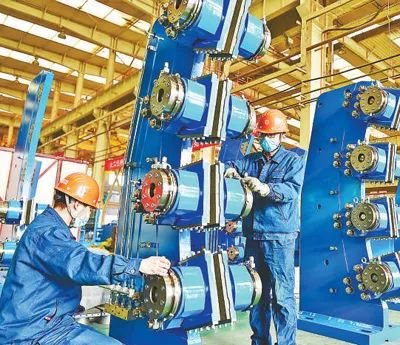 在河南省洛陽市中信重工車間內(nèi),工人忙著趕制礦山裝備產(chǎn)品訂單。