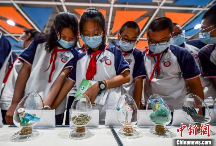 學(xué)生們觀看毒品模型,了解毒品的種類(lèi)和形狀。 劉新 攝