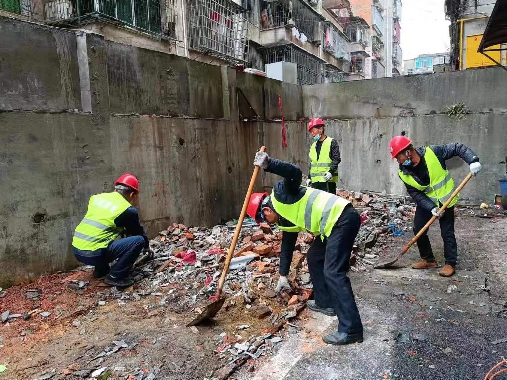 沅江市瓊蓮勞務(wù)有限責(zé)任公司的勞務(wù)工人進(jìn)行保潔清理工作。