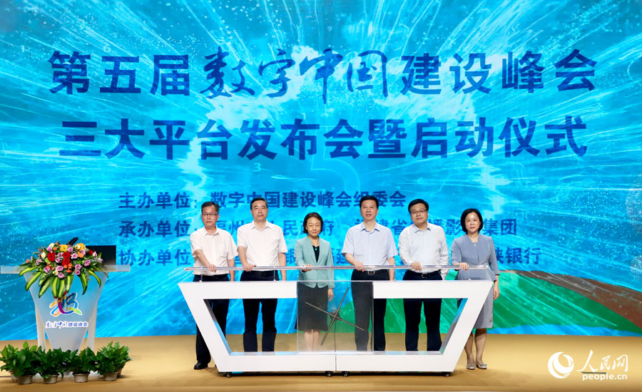 第五屆數(shù)字中國建設(shè)峰會三大平臺發(fā)布會暨啟動儀式現(xiàn)場。人民網(wǎng) 謝小姿 攝