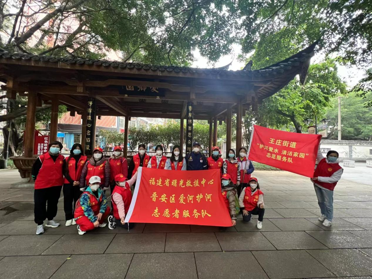 圖為福建省曙光救援中心組織社會(huì)志愿者們清潔晉安河沿線